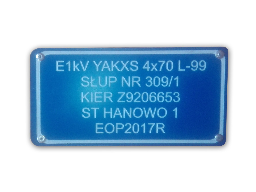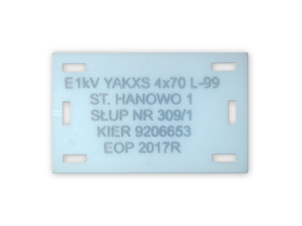 Wykonujemy tablice informacyjne oraz oznaczniki kablowe dla branży energetycznej, zgodne ze standardami oznakowania i numeracji obiektów energetycznych.